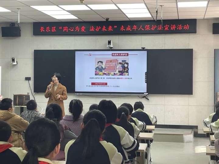 在法治宣传教育方面,长乐区加强部门协同,通过开展政策法规进社区、进农村、进校园的“三进”活动,形成普法合力,筑牢未成年人权益保障的法治屏障。其中,“阳光长乐福蕾行动”公益讲座进校园和“同心为爱·法护未来”未成年人保护法进校园宣讲活动共覆盖了32所中小学校,累计参与人数超2000人次。