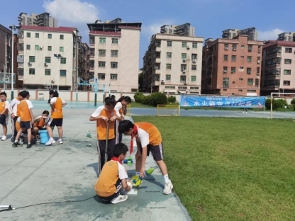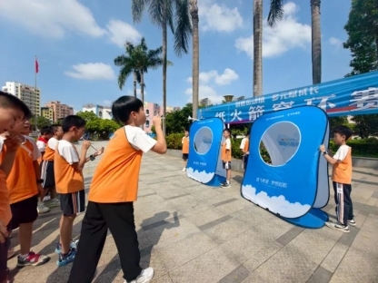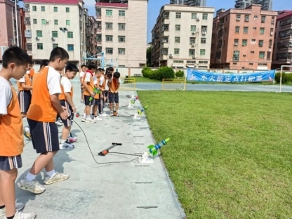 五年级的参赛选手们带着精心制作的水火箭,个个摩拳擦掌、跃跃欲试。比赛开始,充水、打气,随着“砰”的一声闷响,水火箭拔地而起,拖着一道白色的水汽尾迹冲向蓝天。它们在空中划过优美的弧线,依靠着精确调整的尾翼和发射角度,向着远处的靶标飞去。