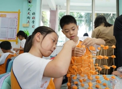 二年级的同学们分成若干小组,围坐在摆满新鲜萝卜和纤细牙签的桌前,眼神中满是专注与坚定。他们小心翼翼地将牙签插入萝卜块中,如同精密的工程师搭建着微型建筑。
