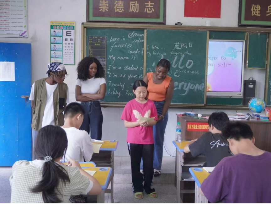 实践团将提升当地青少年语言素养作为首要任务,精心设计系列课程。通过“语音面貌”初测精准掌握学员基础,并贯穿发音方法讲解、优秀作品赏析、实战演练等环节。三名来华留学生则专注于初中生英语口语提升,拓展语言视野。同时,团队开展“童墨畲乡·书写共情”硬笔书法培训,让学员们在规范书写汉字的过程中,深化对中华优秀传统文化的情感认同,提升运用国家通用语言文字的能力。