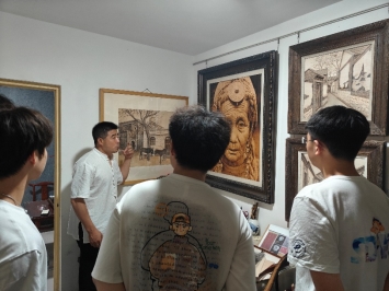 实践团首站拜访烙画非遗传承人孙希才。这位退伍军人出身的艺术家,现场演示了从选材、线描到烙制的完整工艺流程。面对现代多元娱乐冲击下烙画传承的困境,孙希才提出创新计划:“将烙画课堂引入校园,融合现代审美元素,推动传统技艺走向世界”。团队成员不仅体验了烙画制作,更深刻体会到非遗传承中“守艺”与“创新”的辩证关系。