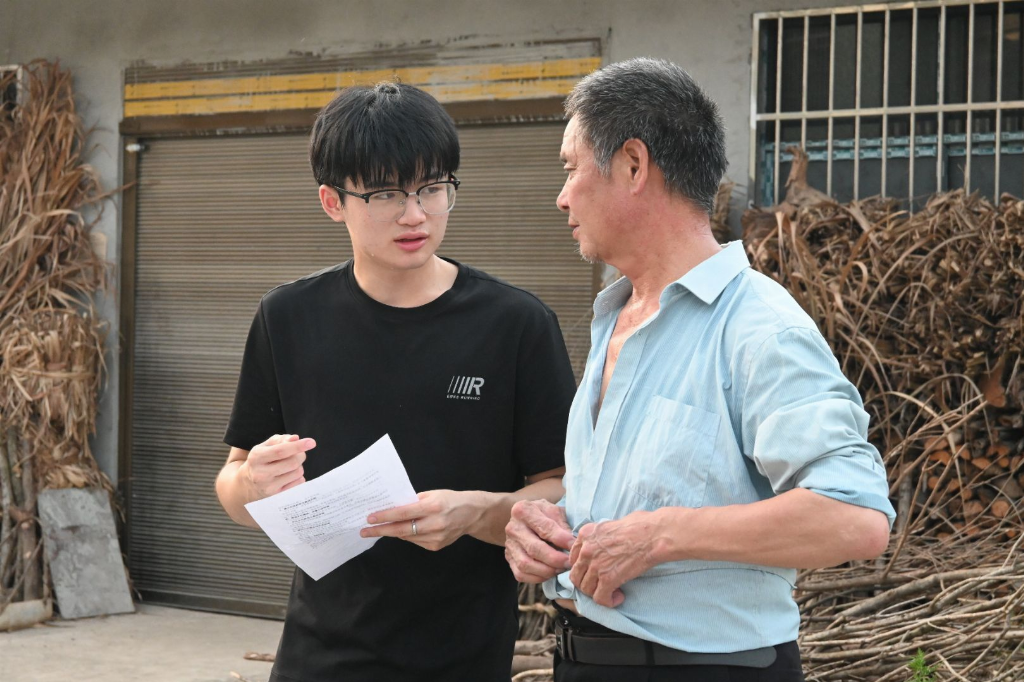 宣讲过程中,面对方言沟通的挑战,志愿者们展现出极大的耐心与热忱。他们俯身倾听、放慢语速,借助手势、身边实例反复解释,确保每位村民都能准确理解政策内涵。其饱满的热情和务实的作风赢得了村民的信任与好评,“这些大学生讲得透!句句都是咱种地过日子的实在话!”一位在田间聆听的老农由衷说道。