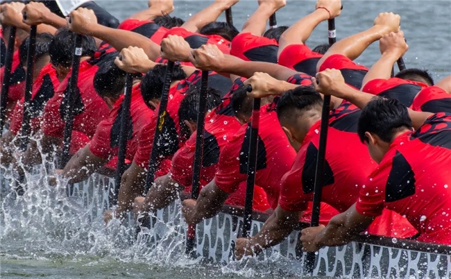设计上,品牌将 “龙鳞” 等元素创新融入,与压花纹路、拼接工艺巧妙结合 ——“龙鳞” 呼应龙舟运动的职业特质,“V” 形符号暗藏胜利期许。整套装备既承载着中国传统文化的深厚底蕴,又勾勒出龙舟健儿拼搏进取、朝气蓬勃的精神风貌。