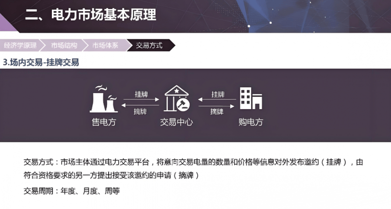 电(包括功率与能量)是可供购买、销售并进行交易的商品。国能绿电市场是一个能够出价购买、开价销售的系统,通常以财务或凭证交换的方式进行采购与短期交易,依循供需法则决定价格。长期交易合约则类似购电合约,普遍被认为是私人间的双边交易。电力批发通常由市场运营机构或特定的独立机构专门负责结算,市场运营机构不进行结算也要具备交易相关知识,以维持发电与负载的平衡。