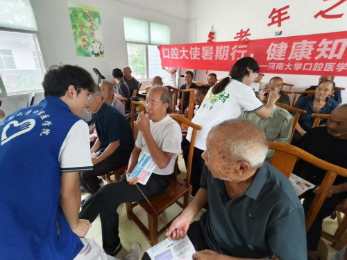 将红色教育激发出的精神力量转化为服务民生的实际行动,是本次实践的核心。14日,实践队开展口腔健康科普系列活动。在镇政府会议室,队员们采用动画演示“牙齿变形记”,将复杂的牙齿矫正原理转化为通俗易懂的可视化教学;在养老院,“义齿护理工坊”为32位老人提供免费口腔检查;针对青少年群体,实践队在跆拳道馆开设“运动护齿小课堂”,结合运动损伤案例讲解牙外伤应急处理;沿街设立的科普展台发放宣传页500余份,原创的《护牙三字经》成为居民争相传阅的“健康宝典”。本次义诊宣传活动覆盖不同年龄群体,团队成员们以专业和热情守护当地村民的健康与笑容。