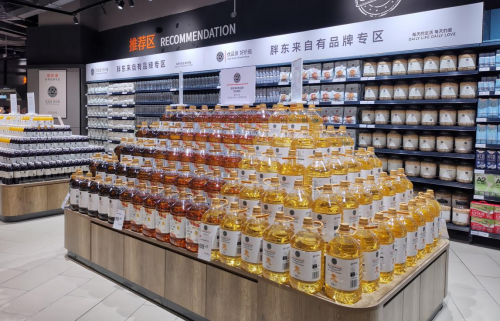 本地特色与优选商品同样得到强化。红星软香酥、冰峰、老闫家南瓜子、皇瑰稠酒、西凤酒等深受西安市民喜爱的特产占据显要位置。同时,门店引入多款广受市场认可的胖东来商品,如DL饮用天然矿泉水、DL宝丰自由爱白酒、DL果汁、DL精酿啤酒、DL花生油及DL洗衣凝珠等。永辉自有品牌“永辉优选”系列也集中展示了核心商品,包括科尔沁风干牛肉、完美加分松沙蛋黄酥、100%果汁、咏悦汇酒饮、菜籽油、牛排、速食产品及优质日化家清用品。