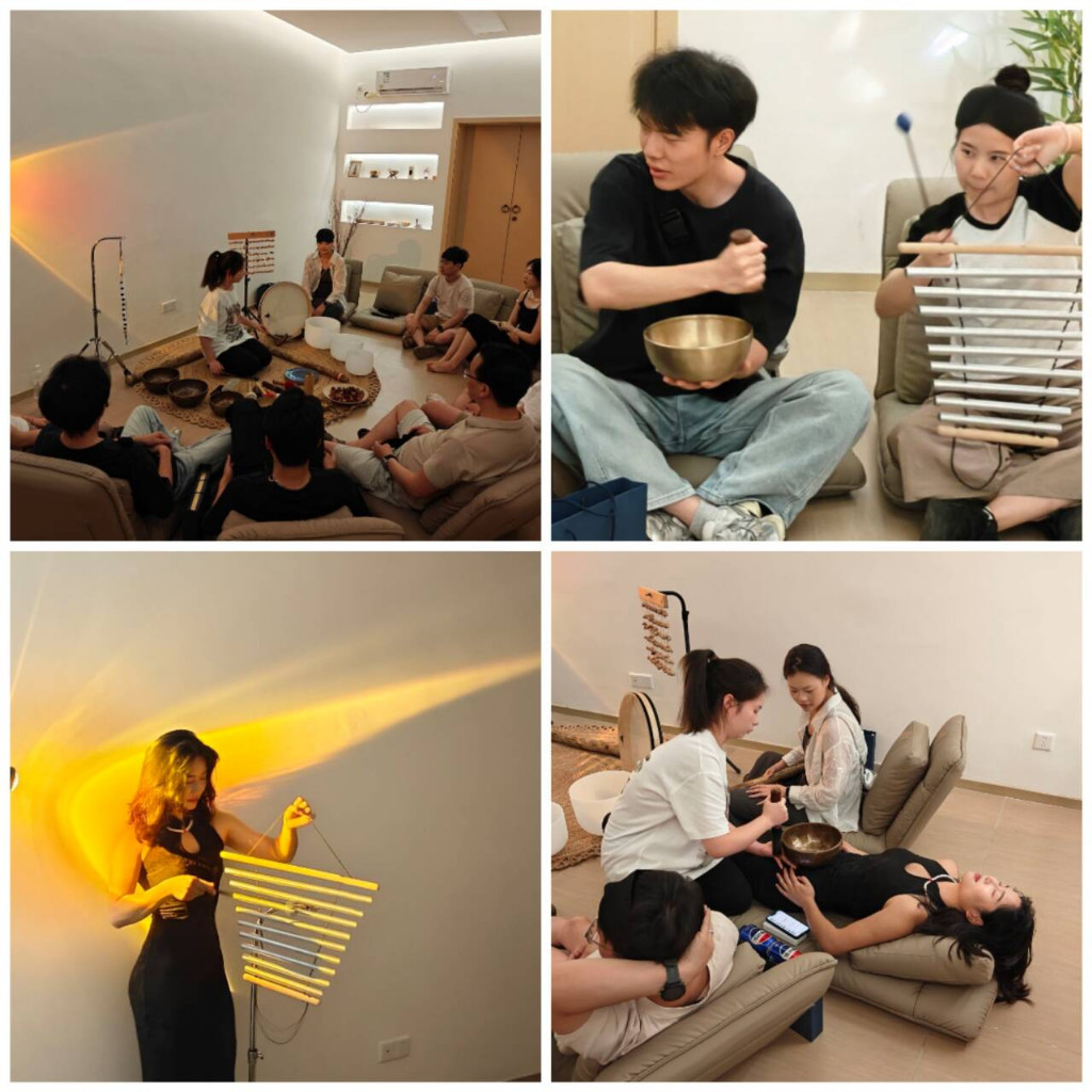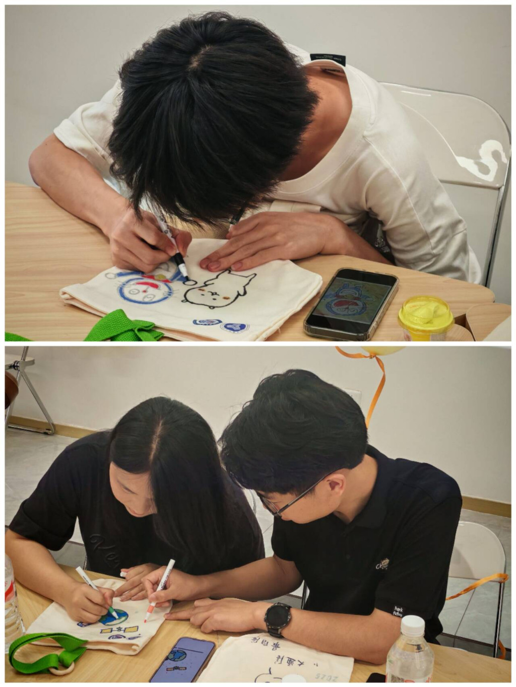 座谈会后,“五感归‘家’”创意体验活动在鱼城书院温馨展开。听觉抚慰区,空灵的颂钵音波涤荡身心,校友们闭目静享,放松身心,感受这难得的宁静时光。味觉巧手区,烘焙DIY现场面粉飘香,校友们在李林燕老师的指导下手持面团,通过揉捏搓煮巧制贝果。药饮品味区,校友们闲话家常,感叹母校日新月异的变化。触觉创意区,围绕“不管昨天快不快乐,反正今天很快乐!”的主题,校友们绘制专属于自己的通信包DIY,用画笔寄语对母校的深情与相聚的欢愉。
