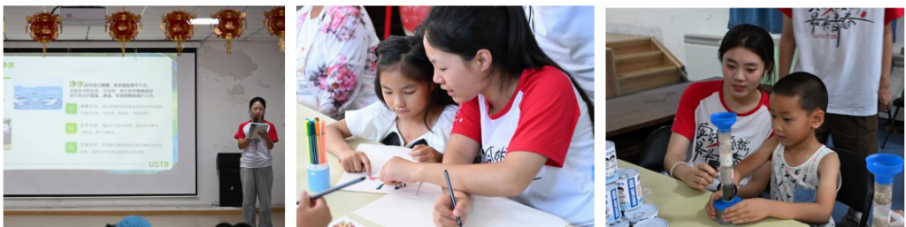 在阜高营村社区活动室,一场别开生面的水资源保护科普宣讲火热开展。北京科技大学能源与环境工程学院“美丽中国”宣讲团成员从日常节水妙招到前沿净水技术,从水污染治理到生态修复案例,向村民和孩子们深入阐释水资源保护对生态安全与可持续发展的重要作用。同时,实践团成员引导孩子们思考并用画笔勾勒出大自然的水循环过程,在稚嫩心灵根植“节水护水,点滴可为”的信念。活动特别设计了互动体验环节,实践团成员带领孩子们动手组装简易净水装置,让科技魅力直观呈现。