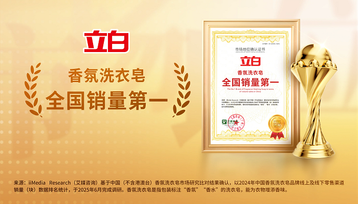 近期,立白获全球领先的新经济产业第三方数据挖掘和分析机构iiMedia Research(艾媒咨询)授予的“香氛洗衣皂全国销量第一”市场地位确认。