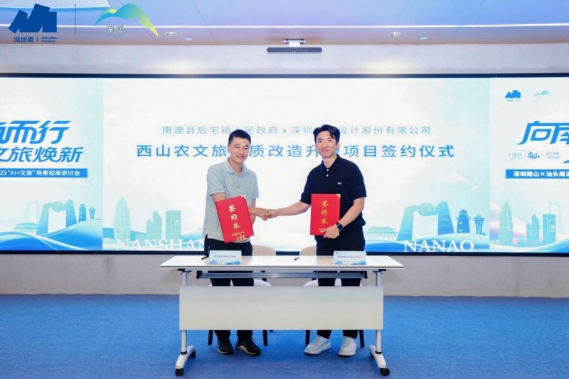 南澳县卫生健康局与南山区卫生健康局现场签约,由南山区卫生健康局向南澳县捐赠10台自动体外除颤器(AED)。奥雅设计与南澳后宅镇政府达成西山农文旅提质改造协议,双方携手为南澳打造特色文旅新地标,推动海岛乡村风貌与现代旅游需求的有机衔接;第一太平戴维斯受聘为南澳招商顾问,引入国际化产业运营思维,为海岛文旅项目提供全链条策划与资源对接服务。