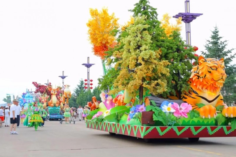 花车设计不仅注重视觉冲击力,更融入动态特效:虎头摆动、翅膀扇动、雪花机喷洒等细节,让静态的造型焕发生命力。夜幕降临时,花车更以夜光效果点亮林海,为观众呈现一场光影交织的奇幻盛宴。