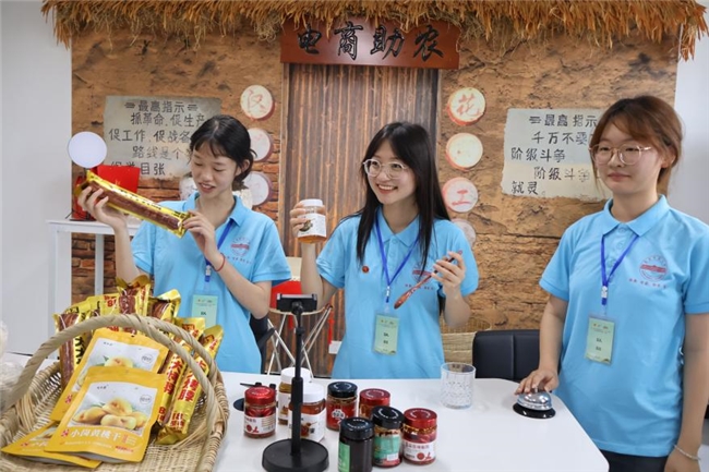 在盼盼食品加工厂,“农田—车间—直播间”的产业链让成员惊叹;葡萄园里,科学种植让阳光玫瑰甜度稳定在20度以上;电商直播间内,信息与计算科学专业2024级吴雨桐试播助农,订单数的攀升让她直呼“数字就是新时代的红手印”。