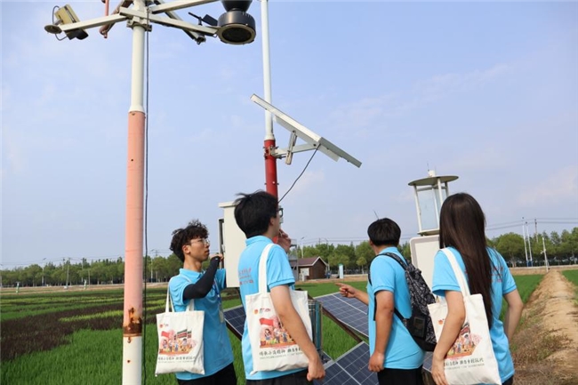 7月16日,实践团从“学史”转向“实干”。清晨的田间,成员们弯腰除草,体会“一分耕耘”的分量。“原来‘科技赋农’不是空想,得先懂泥土的脾气。”物理学专业2024级倪晓悦擦着汗说。随后,团队赴检测站收集降水、风速数据,为作物产量预测模型积累素材——这正是数理专业“用数据说话”的实践。