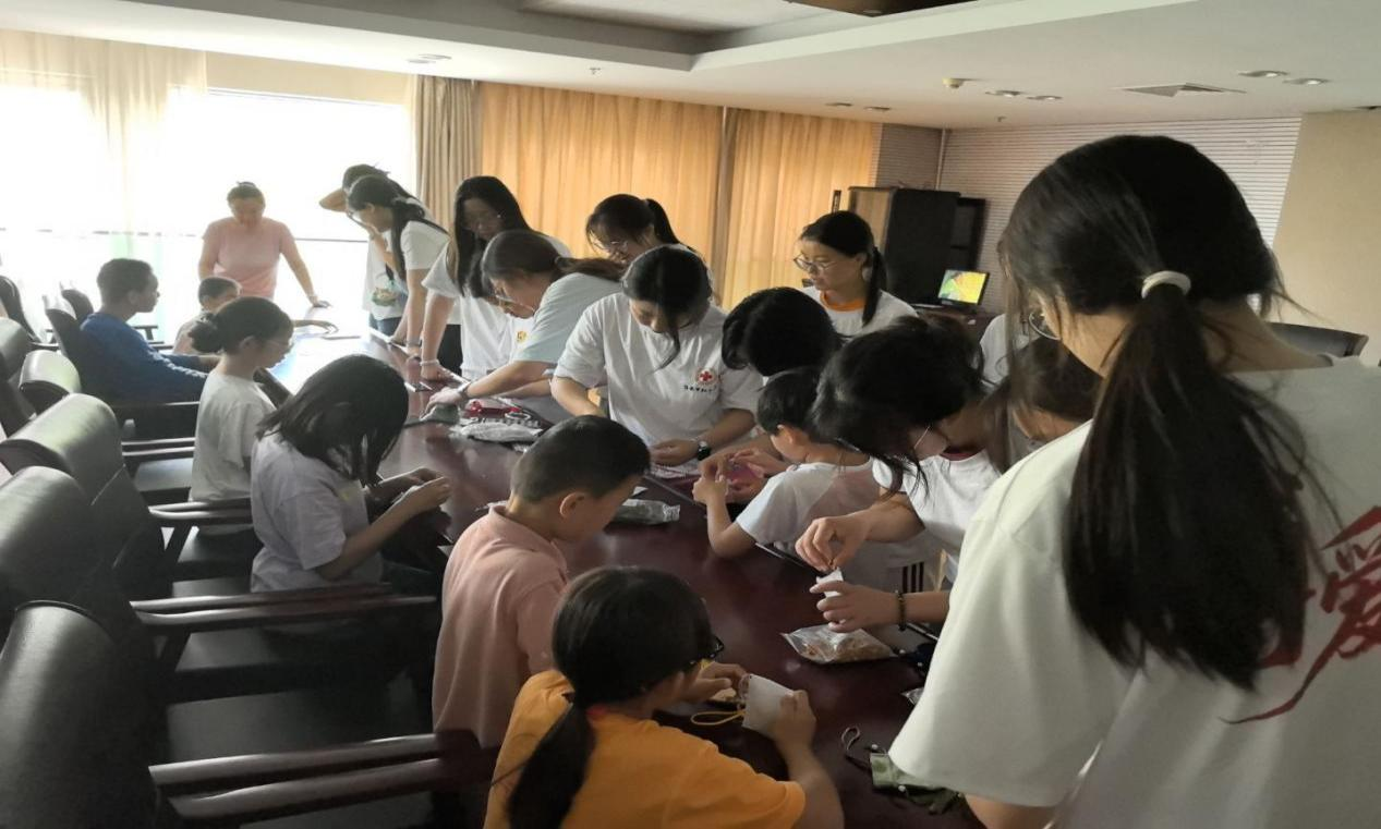 本次活动中,志愿者们将知识科普,手工实践与温情互动融合,为小朋友们带来知识和欢乐。在活动初期,志愿者们便以生动有趣的方式开启了“急救知识小课堂”。队员们通过情景模拟、动画演示和简单易懂的语言,讲解了烫伤处理、异物卡喉急救等日常生活中可能遇到的紧急情况应对方法。孩子们听得专注,不时举手提问,课堂氛围轻松又活跃。互动环节中,小朋友们积极参与模拟操作,在实践中加深了对急救知识的理解,也初步建立了自我保护意识。