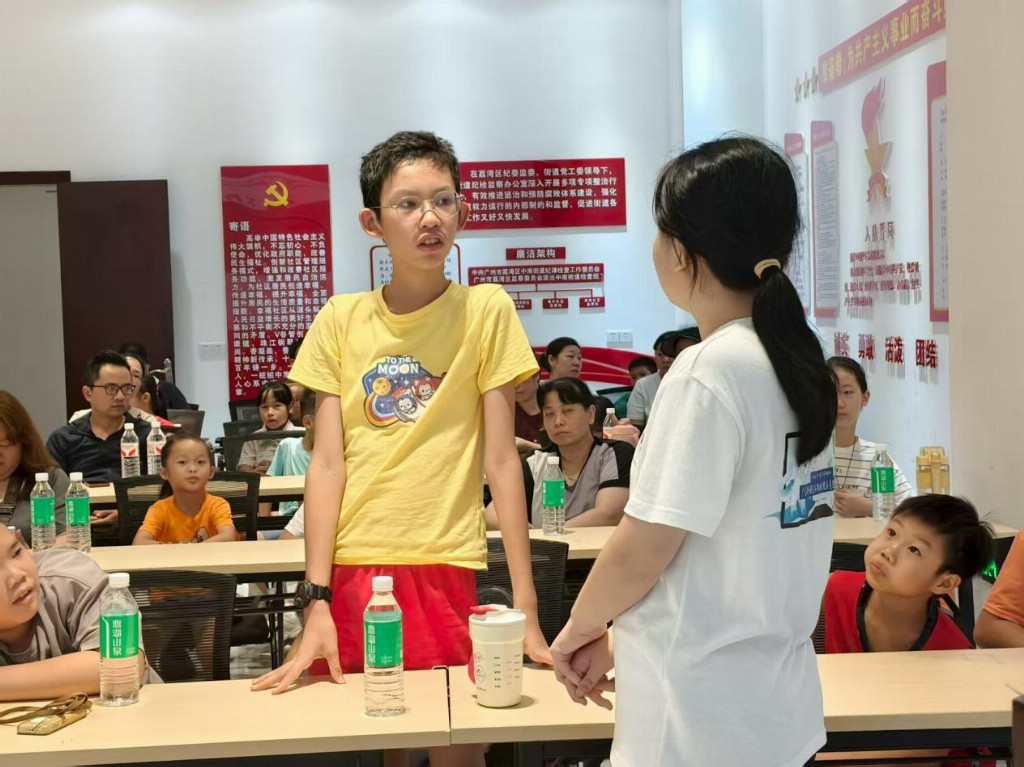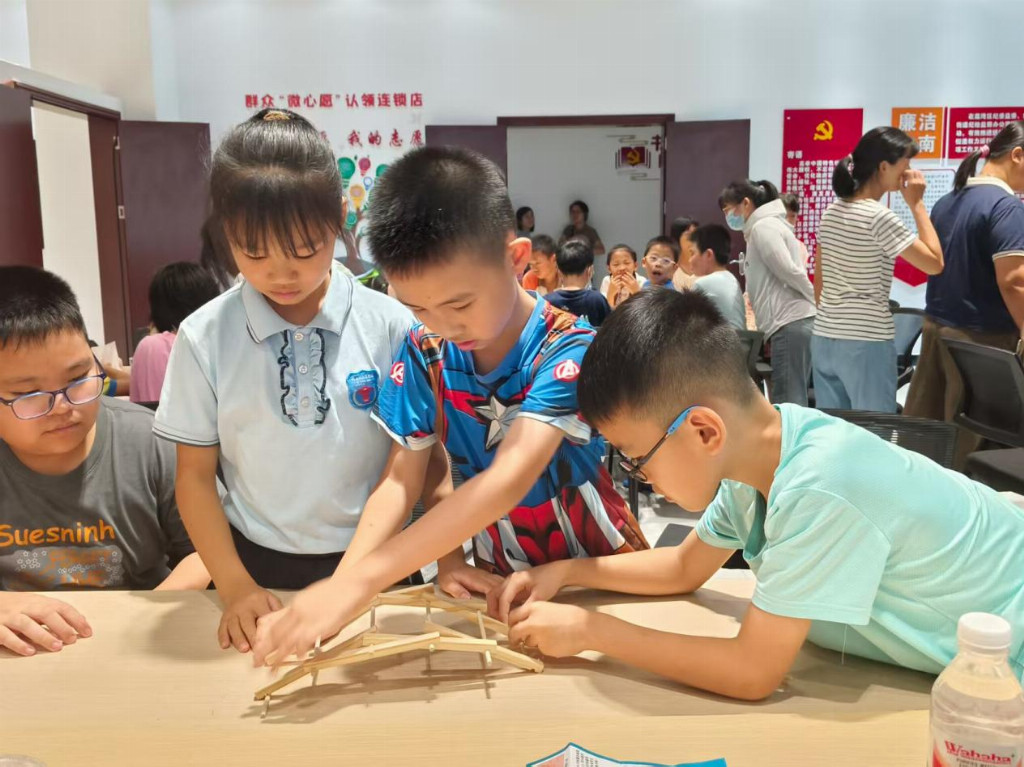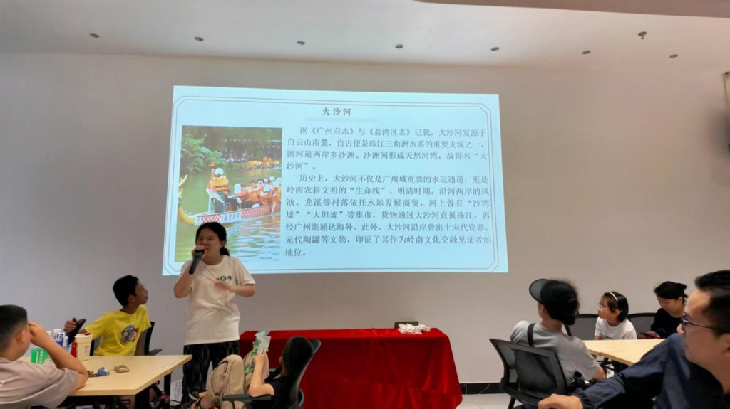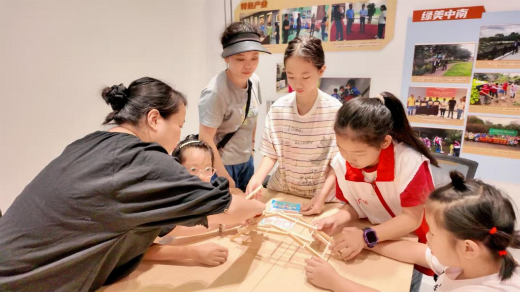 7月17日,实践队创新形式,联合中南街道党群服务中心、社工站共同举办了一场别开生面的“探秘千年水工,乐享岭南文化”亲子体验课,吸引了32组家庭积极参与。活动现场,队员们将书本知识“活化”,生动讲述广州“水城记忆”。最吸引人的环节是亲子协作搭建“不用一颗钉子的鲁班桥”,家长和孩子通力合作,在实践中亲身体验古代水利工程的精妙智慧。“这种动手体验太棒了!让孩子在玩中学到了岭南水文化的智慧,印象特别深刻。”一位参与活动的家长表示。欢声笑语中,岭南水城的独特魅力悄然浸润童心。
