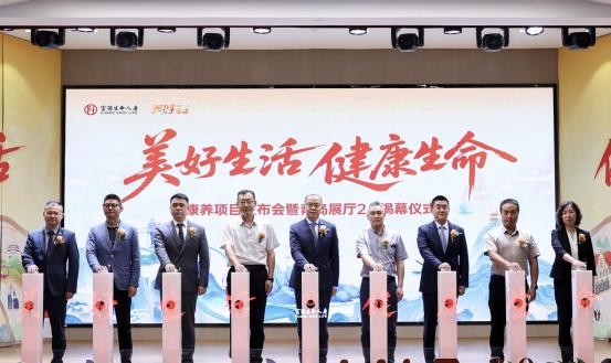 7 月 23 日,富德生命人寿青岛分公司“美好生活 健康生命 ”康养项 目发布会暨青岛展厅2.0 揭幕仪式在青岛国际航运中心盛大举行。活动现 场星光熠熠,青岛市委金融办副主任朱英桃、青岛市市北区政协副主席、 工商联主席苑振强、青岛市保险行业协会秘书长王耿建、富德生命人寿总 经理助理陈黎、富德生命人寿青岛分公司党委书记、总经理周立国、富德 生命人寿多元行销中心总经理助理余刚、 日本立亚设计公司中国区总监代 峰、青岛市广播电视台、网易山东等各界嘉宾、分公司总经理室、绩优业 务员代表、VIP 客户代表齐聚一堂,共同见证这一历史时刻。