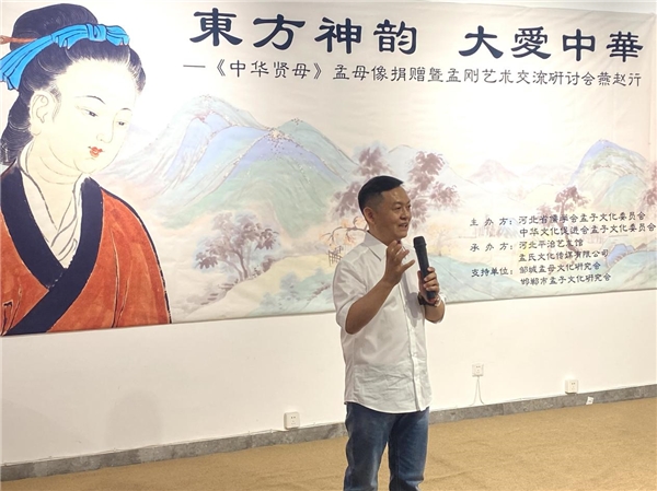 7月27日,坐落于石家庄市高新区的河北平治艺术馆内庄重整洁,由中华文化促进会孟子文化委员会、河北省儒学会孟子文化委员会联合主办,河北平治艺术馆承办的“孟母画像捐赠暨孟刚艺术交流研讨会”在这里隆重举行。这场融合艺术捐赠与学术思辨的文化盛事,旨在致敬中华母教传统,推动孟子思想在当代焕发新生机,以实际行动践行新时代的文化使命。