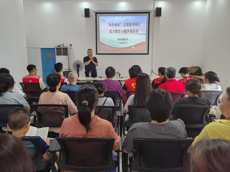 2025年7月26日,白沙洲街道同心园社区雷锋驿站内暖意融融,由社区联合长沙市怡欣心理服务中心打造的“益企同心·心灵成长计划”——“怎样让孩子爱上学习”亲子教育主题沙龙温馨启航。作为社区“心灵驿站”建设的首场落地活动,本次沙龙吸引了50余名家长、企业员工、志愿者及心理教育专家参与,共同探索家庭教育新路径。