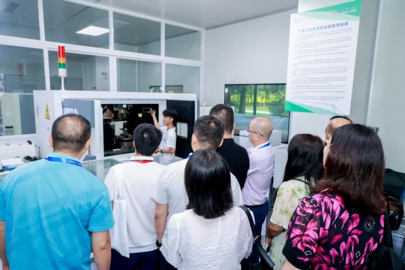 与会嘉宾在工作人员的引领下,前往参观广东工业大学高性能工具全国重点实验室、PCB学院实验室及柔性板材料研发实验室。