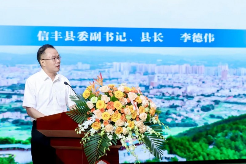 随后,信丰县委副书记、县长李德伟作为签约代表发表讲话。他表示,当前,信丰县正着力建设体现信丰特色和优势的产业体系,其中电子信息和高端装备制造是主导产业,取得电子信息规上企业产值连续四年保持20%以上增长,2024年产值229亿元、占规上工业总产值的比重69%的成绩。目前信丰县规上企业149家,拥有科翔、迅捷兴、强达、福昌发等上市企业、链主企业。今年1月景旺顺利投产后,进一步加强了产业链发展。
