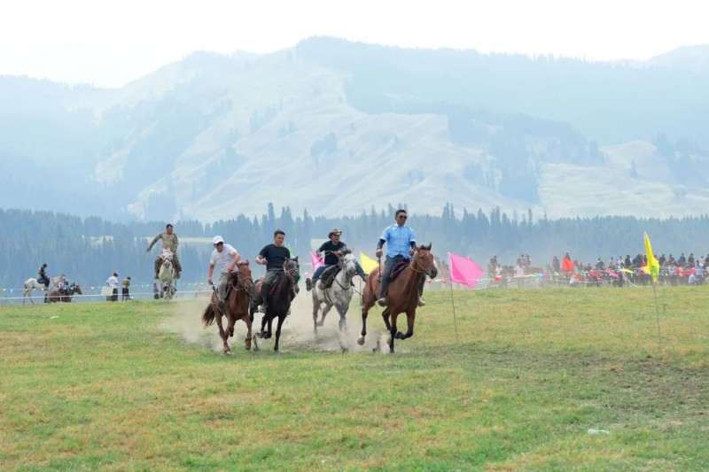 营地旁的赛马区,骏马早已备好,骑手们身姿矫健,马蹄踏在草地上,扬起细碎草屑,围观人群的欢呼与马蹄声交织,热闹非凡,有人被感染,跃跃欲试报名体验策马奔腾 。