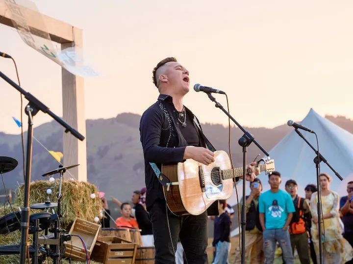 最让人期待的,当属帕尔哈提的登场,他独特的嗓音在星空下穿透力十足,《礼物》《故乡》《你怎么舍得我难过》等经典歌曲融合民族与现代元素的歌曲引得全场跟唱。