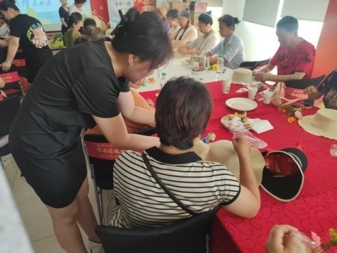 在手工制作环节,客户们充分发挥自己的想象力和创造力,为草帽增添了独特的装饰,使其变得时尚又个性。每一顶夏凉帽都承载着客户们的创意和心意。大家互相欣赏、交流制作心得,现场洋溢着融洽的氛围。在制作过程中,工作人员穿梭在客户之间,为大家提供耐心的指导和帮助,与客户们亲切交流,现场一片欢声笑语。