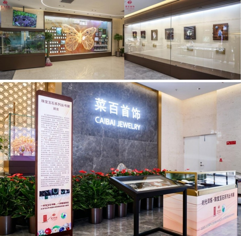 7月正式挂牌北京菜百黄金珠宝博物馆祥云小镇分馆,设有成长主题、婚嫁主题、自然的魔法、荧光矿物小屋等特色展区,在这里甚至可以鉴赏到被联合国教科文组织授予“民间工艺艺术家”称号的施禀谋大师的作品,观看到切叶蚁家族的“分工合作”“会发光”的石头、包裹在琥珀里的昆虫,给予消费者沉浸式、趣味性的购物体验。同时,还设有“珠宝玉石系列丛书展”,通过精选书摘与实物对照,打造沉浸式科普阅读空间,引领观众探索珠宝玉石的形成奥秘、鉴定知识与艺术文化价值。