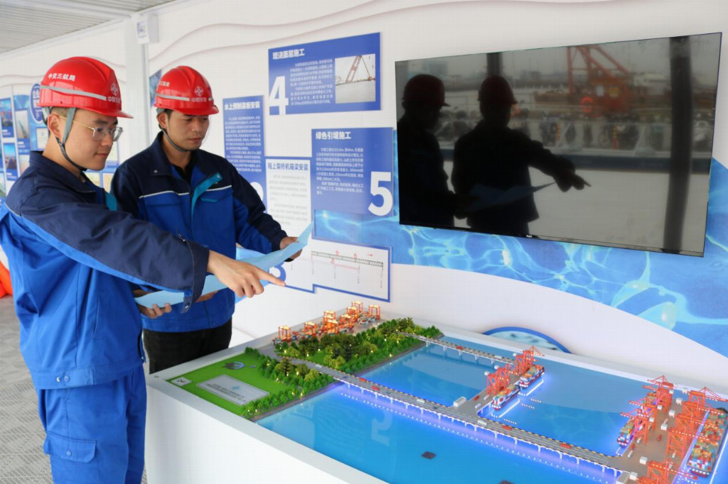 为确保施工精度的同时保护环境,项目采用了多项智慧技术。针对新旧桩基水下精准穿插的技术难题,项目团队创新应用激光雷达水下扫测技术,精确获取既有桩基参数,并融合BIM建模与远距离海工打桩定位技术,实现了新旧结构的毫米级精准“对接”,为码头“零碳”升级提供了坚实技术支撑。