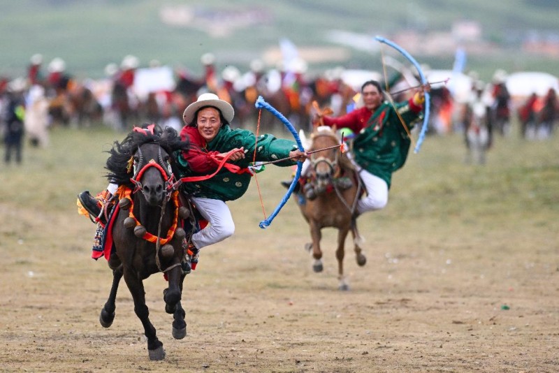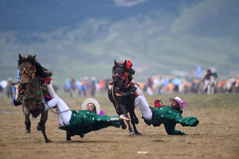 次日(7月31日),多旺塘化身传统马术的智慧与技巧殿堂。上午的“骑马拾哈达”比赛中,骑手们化身草原上的掠影,高速奔驰中精准俯身,灵巧地将散落的哈达一一掠起。下午的“新(老)呷纠赛”将气氛推向顶点,骑手们在马背上完成各种高难度平衡动作,力量与柔韧的极致结合引得观众阵阵惊呼。“这是我们祖辈传下来的本事,看到年轻人练得这么好,心里高兴!”观赛的藏族村民扎西多吉脸上笑开了花。