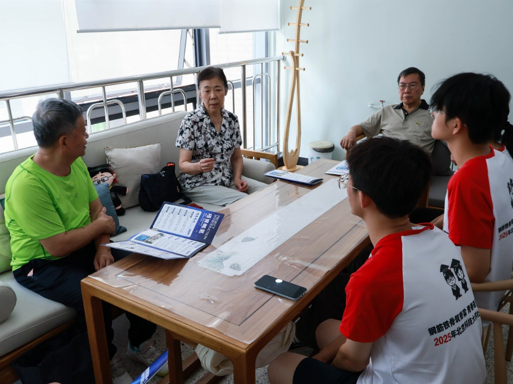 当智能防跌技术遇见老一辈教育工作者的智慧,碰撞出令人惊喜的火花。团队成员走进了北京科技大学铭德楼,与老教授们促膝长谈。"这个功能要考虑老年人的使用习惯""这个设计可以更人性化"...老教授们以他们特有的严谨与温情,帮住同学们校准了调研的焦距,让年轻的科技创新真正对准了银发群体的真实需求。临别时,一位老教授说:"科技要有温度,你们正在做很有意义的事。"这句话,将成为智护先行实践团继续前行的力量。