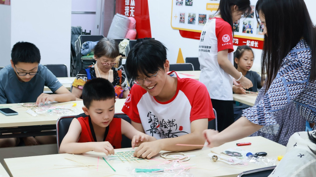 图表 9实践团在小关社区与小朋友一起制作非遗竹编风铃