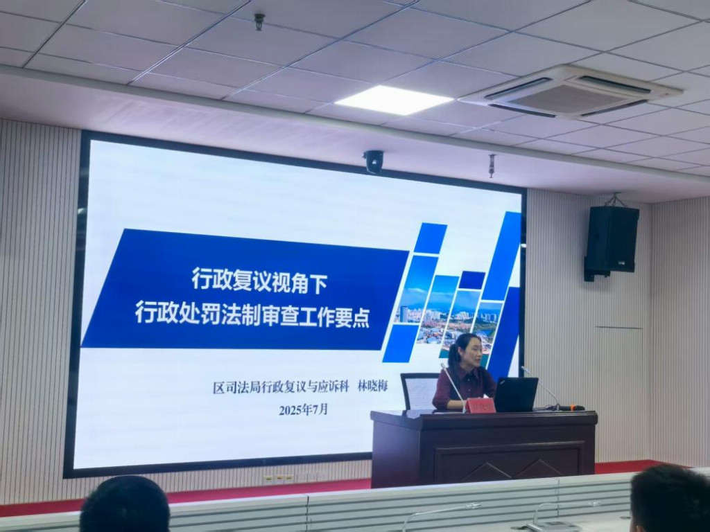 区司法局行政复议与应诉科科长林晓梅围绕“行政复议视角下行政处罚法制审查要点”主题,首先介绍了行政处罚类复议申请相关工作情况,随后以实际办理的行政处罚类复议案件为切入点,聚焦行政行为作出阶段、行政复议答复阶段、行政应诉阶段三个关键环节,从事实认定、证据审查、法律适用审查、程序合法性审查等方面进行了深入剖析,为公职律师处理相关业务提供了清晰的审查路径及风险防范指引。