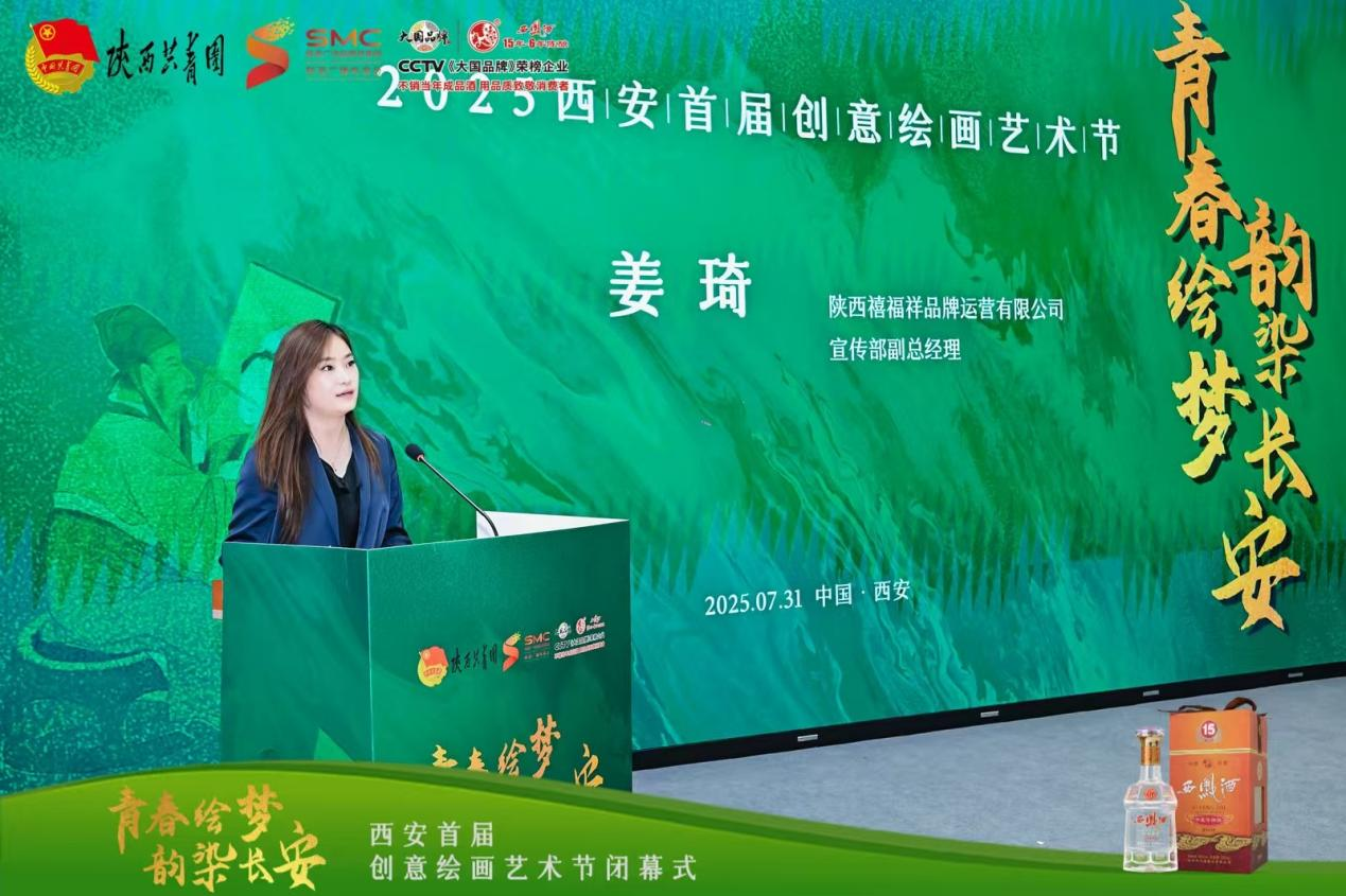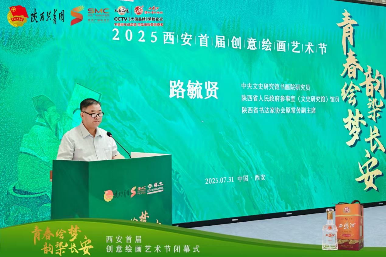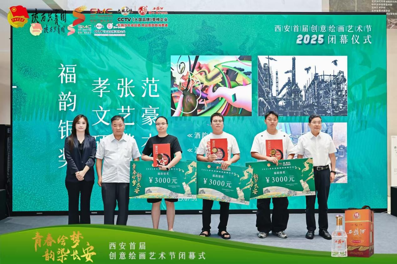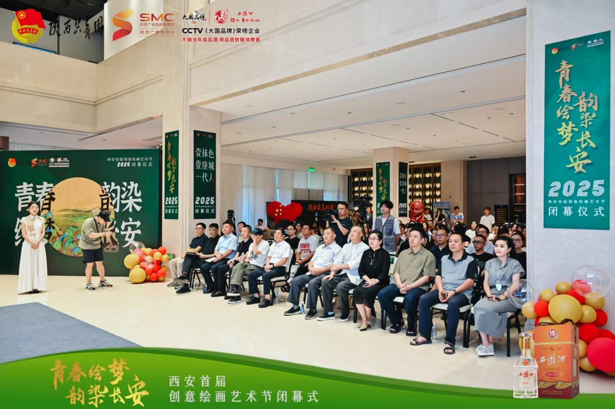 7 月31 日上午,“青春绘梦 韵染长安”2025西安首届创意绘画艺术节在陕西凤美术馆圆满落幕。本次活动由共青团陕西省委指导,陕西广电融媒体集团(台)资讯中心主办,陕西禧福祥品牌运营有限公司承办,陕西西凤十五年六年陈酿酒营销有限公司协办。到场嘉宾有中央文史研究馆书画院研究员、陕西省人民政府参事室(文史研究馆)馆员、陕西省书法家协会原常务副主席路毓贤、陕西省政府办公厅原副主任、西安交通大学经济与金融学院教授、著名摄影家孙杰、陕西省美术家协会驻会副主席刘奇伟、西安市作家协会副主席、诗歌专业委员会主任杨莹、陕西国画院创研室主任 陕西国画院青年画院执行院长武斌、中国美术家协会会员、西安中国画院展览部主任倪超、西安文理学院艺术系主任,陕西省写意油画研究会秘书长张田力、西安美术学院跨媒体艺术系教授邢戈等。