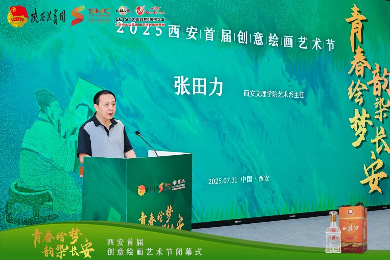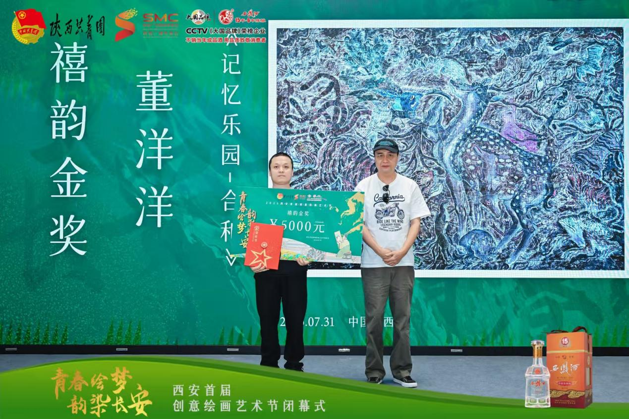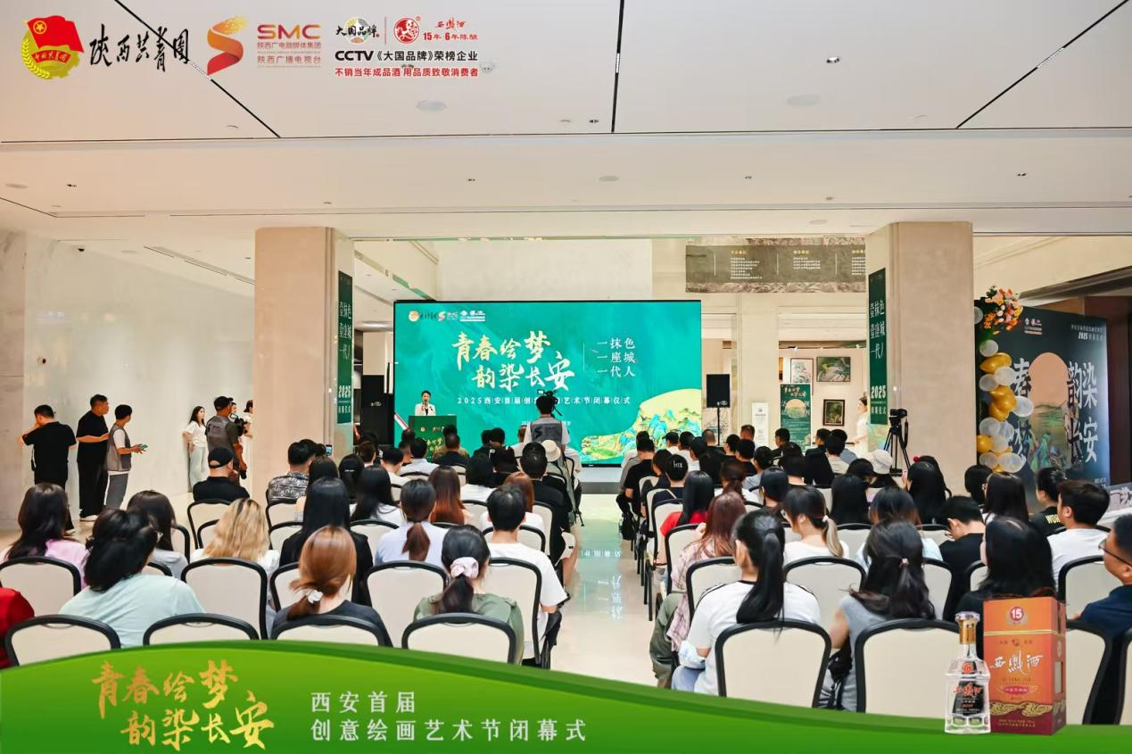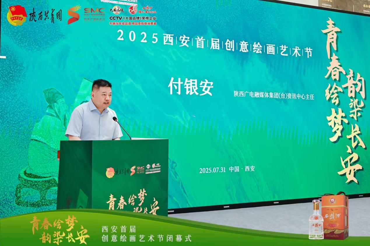 7 月31 日上午,“青春绘梦 韵染长安”2025西安首届创意绘画艺术节在陕西凤美术馆圆满落幕。本次活动由共青团陕西省委指导,陕西广电融媒体集团(台)资讯中心主办,陕西禧福祥品牌运营有限公司承办,陕西西凤十五年六年陈酿酒营销有限公司协办。到场嘉宾有中央文史研究馆书画院研究员、陕西省人民政府参事室(文史研究馆)馆员、陕西省书法家协会原常务副主席路毓贤、陕西省政府办公厅原副主任、西安交通大学经济与金融学院教授、著名摄影家孙杰、陕西省美术家协会驻会副主席刘奇伟、西安市作家协会副主席、诗歌专业委员会主任杨莹、陕西国画院创研室主任 陕西国画院青年画院执行院长武斌、中国美术家协会会员、西安中国画院展览部主任倪超、西安文理学院艺术系主任,陕西省写意油画研究会秘书长张田力、西安美术学院跨媒体艺术系教授邢戈等。