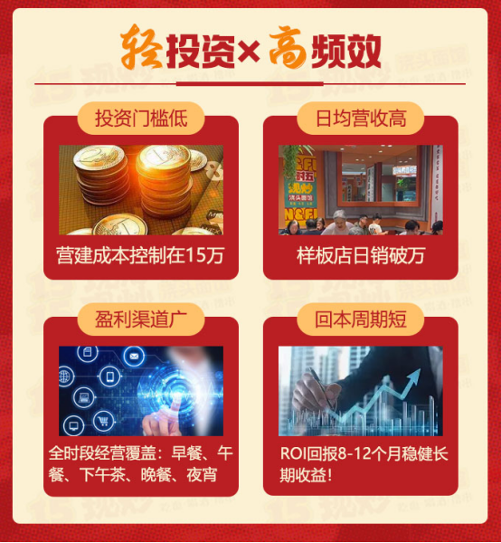 15万元的轻投资门槛打破了餐饮创业的资金壁垒。从选址评估到开业运营,总部提供全方位的六维扶持:千分选址法精准规避风险,模块化装修实现15天快速开业,1个月速成培训让餐饮小白快速上手,数字化系统实时监控经营数据,全年营销方案持续引流,再加上严格的区域保护政策,确保每家门店都能复制成功。8-12个月的回本周期,让资金周转不再成为创业者的负担。