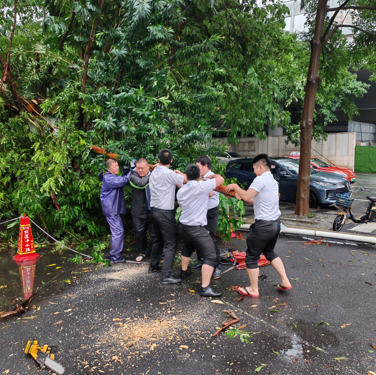 弘场抗战精神:退役军人先锋队、社区党员志愿者们积极参与台风防御、应急抢险等任务,用军魂精神守护社区安全。