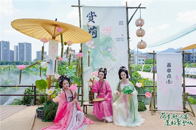 7月25至27日,广东省韶关市新丰县夏韵·荷美乡村农文旅体验季丰城会场活动在新丰县丰城街道龙围村成功举办。活动横跨两天三夜,系列文旅活动与520亩连片荷花争相竞艳,共同打造“沉浸式国风荷韵盛宴”,强力助推“引客入新”,以荷香莲韵美景挖掘郊野经济潜力,彰显丰城街道“百县千镇万村高质量发展工程”三年初见成效之姿。据不完全统计,活动累计接待游客超30000人次。