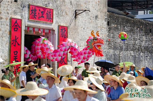 跟随“荷花龙”巡游脚步,一路上,“荷花龙”与衣袂飘飘的汉服佳人、与连片的荷塘形成一幅动人的乡村民俗画卷,令人陶醉,坐落在村庄内的清朝古建筑、不可移动文物镇江楼古朴庄重,恰当好处点缀国风荷韵。