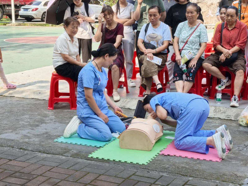 7月31日,保靖县卫健局与大月坡社区开展共建共治共享活动,特邀县人民医院医护人员重点讲解防溺水知识与应急要点,并现场教授心肺复苏等关键急救技能。居民积极参与实操练习,有效提升了社区参与居民应急救护能力。