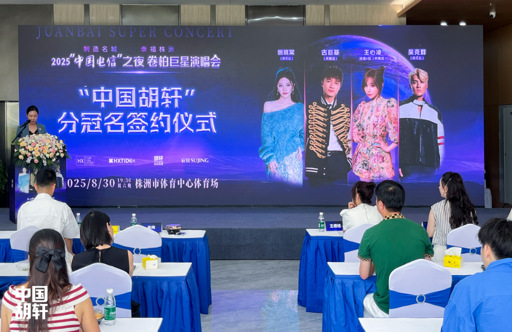 王心凌、古巨基、吴克群、姚晓棠等巨星要来株洲开演唱会了!2025年7月31日,湖南株洲芦淞服饰产业园内,中国胡轩男装品牌与“制造名城·幸福株洲”卷柏巨星演唱会主办方正式签署分冠名协议。