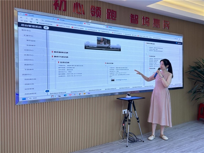 网统管平台还建立了完善的事件上报和闭环处理机制。在褚家村,网格员田雪伟通过APP上传村口垃圾外溢照片。信息瞬间被平台“派单”至镇垃圾中转站。工作人员郑毅刚在指挥中心大屏上确认后,立即调度清运车辆,不到一小时便处理完毕。整个过程透明高效。讲解员补充道,无论是公共设施损坏(如路灯不亮、道路破损等)、日常民生诉求,还是安全隐患上报,都能通过系统快速响应,实现“上报-受理-处置-反馈-评价”全链条闭环管理,处理结果同步公开,接受群众监督。这种“民有所呼、我有所应”的机制,正是基层党员干部践行初心使命、提升群众满意度的有力体现。