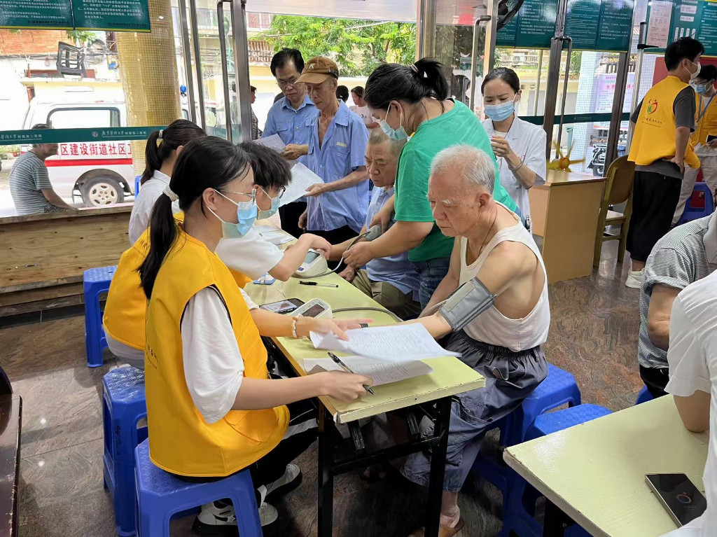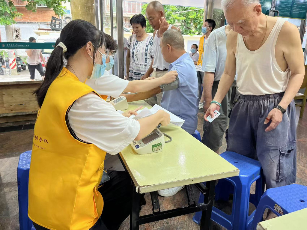7月8日,骄阳似火,却挡不住广东医科大学颐康医养服务队队员们青春的热忱。他们怀揣着扎实的医学知识,走进了湛江市霞山区建设街道社区卫生服务中心,为社区的老年人们送上了一场温暖且专业的健康关怀之旅。