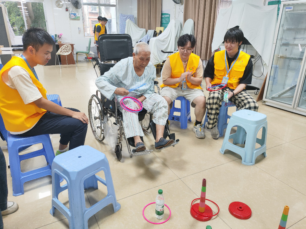 图为队员陪老人做游戏。黄梓彤供图