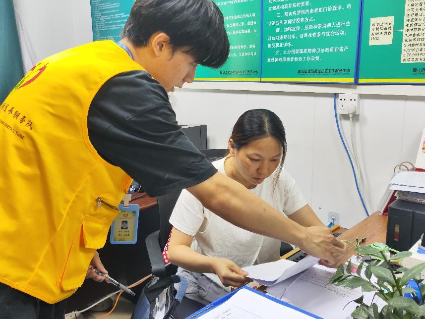 图为队员向工作人员分发调查问卷。黄梓彤供图