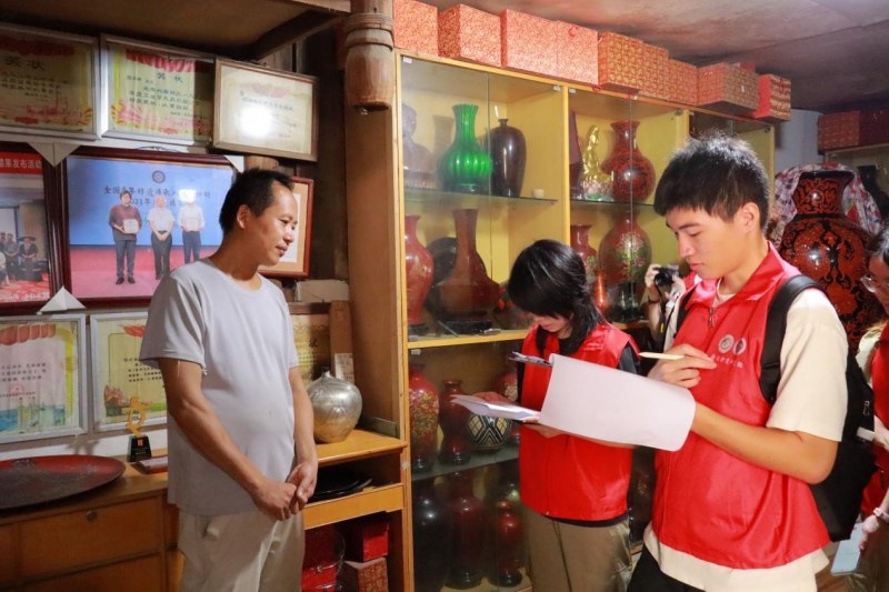 2025年7月16日,为深入学习福州特色非物质文化遗产脱胎漆器的发展历史和制作工艺,探究非物质文化遗产传承人保护的现行法律制度及其实践状况,福建农林大学公共管理与法学院探索非遗传承人法律保护路径实践队前往福州市闽侯县,与市级非遗传承人张升华先生开展了调研访谈。