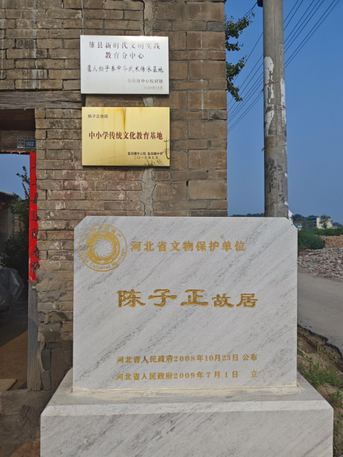 其故居始建于1905年,11间房屋占地860多平方米 ,较完整地反映了当时北方民居建筑的面貌,如今已成为传承和弘扬鹰爪翻子拳武学精神的重要场所。多年来,陈子正的后人一直致力于保护故居,并积极传播鹰爪翻子拳,常年免费教学传授拳法。2007年、2008年分别被列入县级、省级文物保护单位。