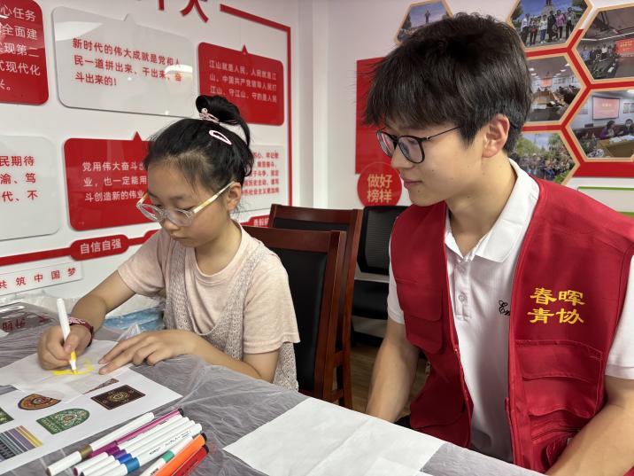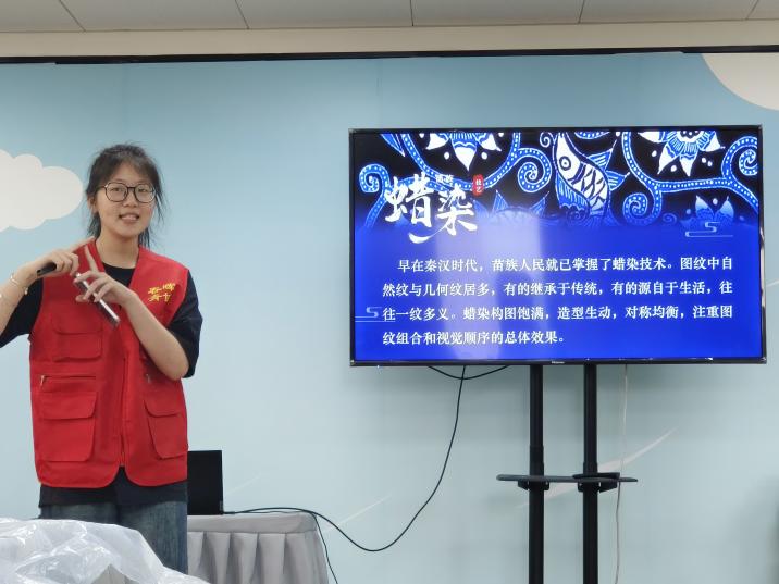 我国的非物质文化遗产种类繁多、底蕴深厚,是中华民族智慧的结晶。此次暑期实践中,团队精心挑选了十四种极具特色的少数民族非遗项目,将其引入南京社区课堂。在白族扎染活动中,志愿者向老人们介绍扎染独特的捆扎技法和天然植物染料的使用,老人们亲手制作扎染香包,感受蓝白交织的素雅之美,体会白族人民千年的智慧传承;苗编竹扇制作体验活动中,小朋友们在志愿者指导下,学习用竹条编织扇子,领略苗族人民对自然的热爱与独特的艺术创造力;彝族彩布贴画活动中,老人们在志愿者协助下,以布为纸、以剪为笔,拼贴出一幅幅饱含彝族文化特色的作品,感受彝族人民对自然和生活的赞美。此外,哈尼族彩线编绳、藏族尼木藏香手串制作、侗族吉祥花制作等活动也有序开展,十四场少数民族非遗体验如同十四颗文化火种,在社区土壤里重燃生机。社区居民也在亲手实践中增进了对少数民族文化的理解与尊重,深刻体会了中华文化“多元一体”的丰富格局,有力推动了民族文化的认知与传承。