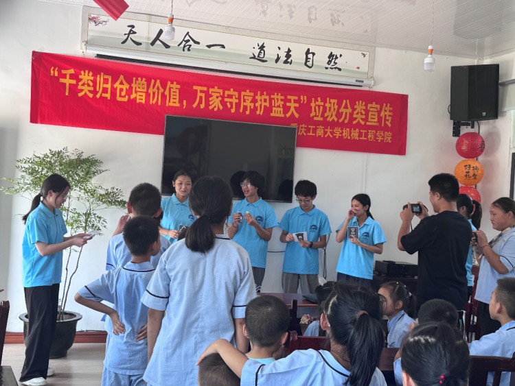 7 月 16 日,重庆工商大学机械工程学院 “‘机’承服务,‘械’递温情” 实践团的9名同学,带着精心准备的互动道具,踏上了彭水自治县桑柘镇的土地。他们此行的目的,是开展以 “千类归仓增价值,万家守序护蓝天” 为主题的垃圾分类宣传活动。该团希望通过本土化科普宣讲与沉浸式互动实践,将环保理念深植乡村土壤,为乡村振兴与生态文明建设奏响青春强音。出发前,实践团做足了 “功课”。团队成员查阅了桑柘镇杨家村的基本情况,了解到当地以农业为主,村民们在日常生活中常有厨余垃圾、废旧农膜等处理难题。