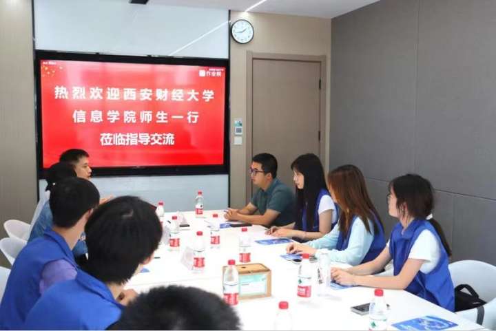 此外,实践队还前往作业帮西安分校进行参观访问交流。作业帮相关业务 BP 负责人范欣向师生们介绍了公司的发展历程、核心业务布局、当前对信息技术类人才的具体需求规格、员工在公司的职业发展路径,以及作业帮在校企合作方面的愿景与实践方向。带队老师朱宏博向企业方介绍了学院的办学特色、优势专业设置、应用型人才培养的成果以及毕业生的就业需求与特点。在自由交流环节,实践队队员与企业代表就教育科技行业的发展趋势、技术岗位所需的核心能力、学生实习实践的机会与内容、以及未来校企合作项目落地的可能性等议题进行了深入交流。